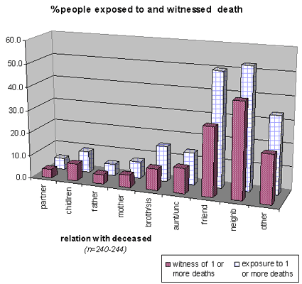starvation, 90% witnessed people being wounded or killed, and at least